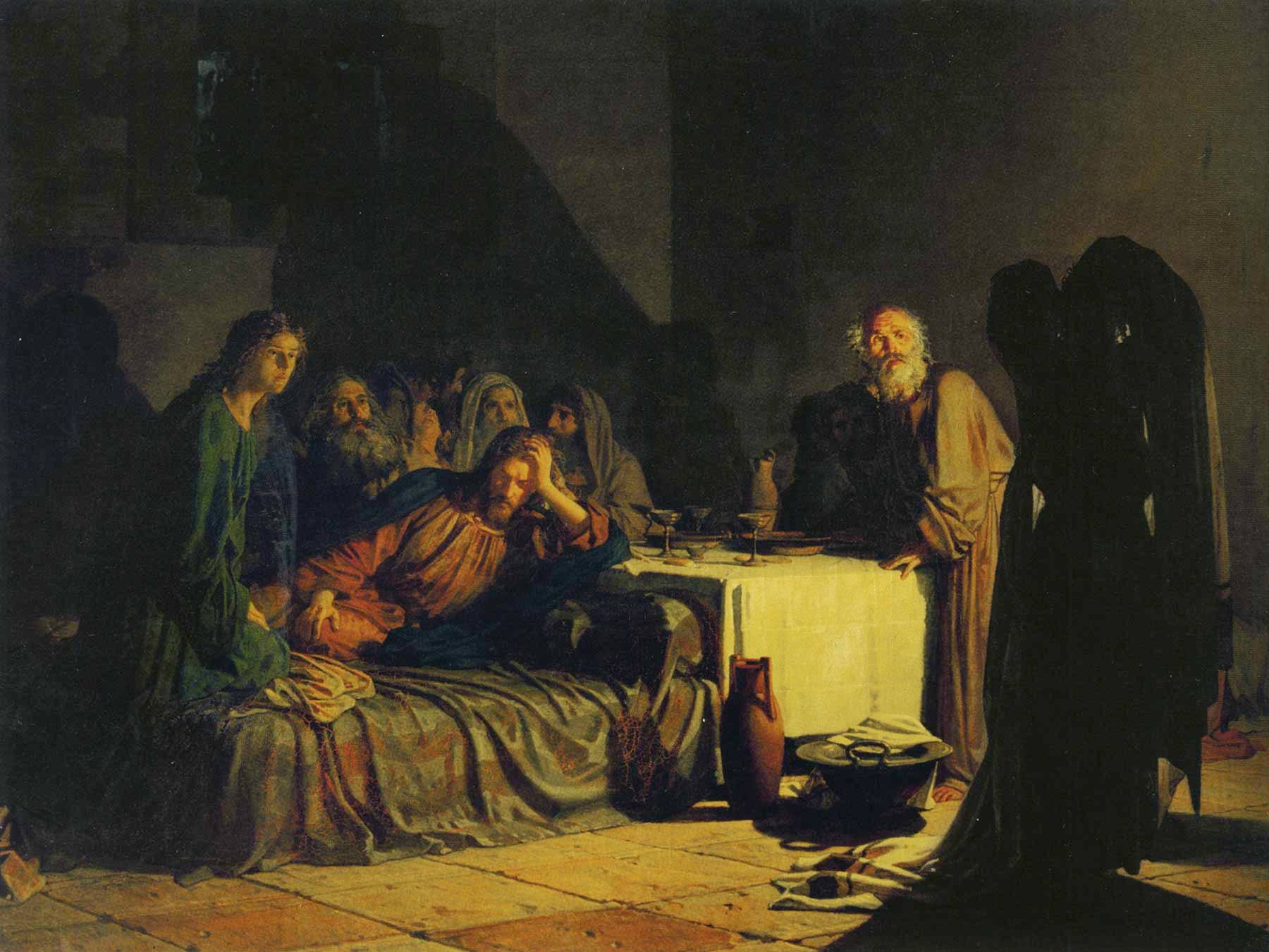 Одним из первых полотен Ге на библейский сюжет стало «Возвращение с похорон Христа».